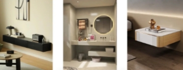 懸浮式柜體下方留空可以有更方便的使用功能,比如收納柜下方放置掃地機器人;玄關柜下方收納常穿的鞋子;浴室柜下方留空避免水汽入侵等,功能性與實用性兼?zhèn)洹?br />