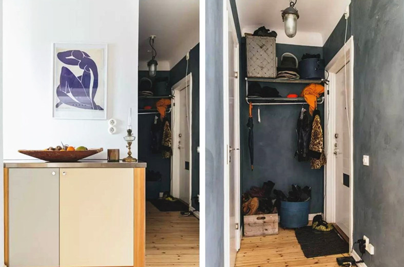 臨近玄關(guān)轉(zhuǎn)角的柜子(與櫥柜同色系)以及玄關(guān)的擺放(凌亂但很生活化)。