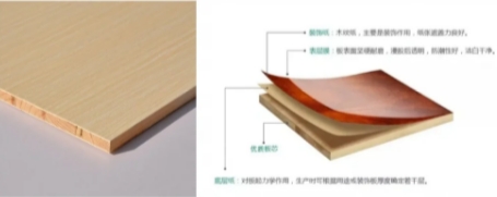 b、組成:是由裝飾紙、表層膜、底層紙、版芯組成。