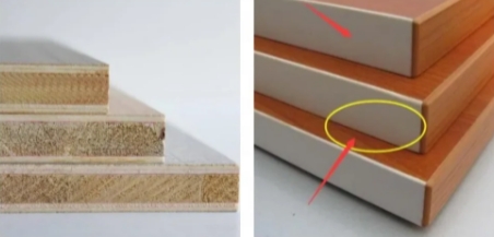 看橫截面是否有垃圾和大的縫隙等,如果中間拼縫較大,則柜體容易翹曲變形。