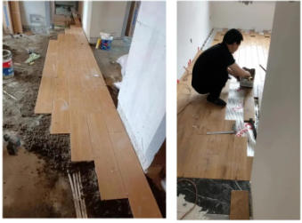 在鋪貼木紋磚之前,先對地面進行找平處理,用半濕的水泥沙進行混合并且在地面鋪平整。